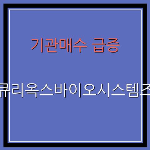 결론적으로 큐리옥스바이오시스템즈는 기술 기반 경쟁력과 산업 성장 수혜를 동시에 갖춘 기업으로 평가되며, 기관 수급 유입은 향후 주가 흐름에 긍정적인 신호로 해석할 수 있다. 단기 변동성은 존재하지만 중장기 관점에서의 접근이 유효한 종목으로 볼 수 있다.